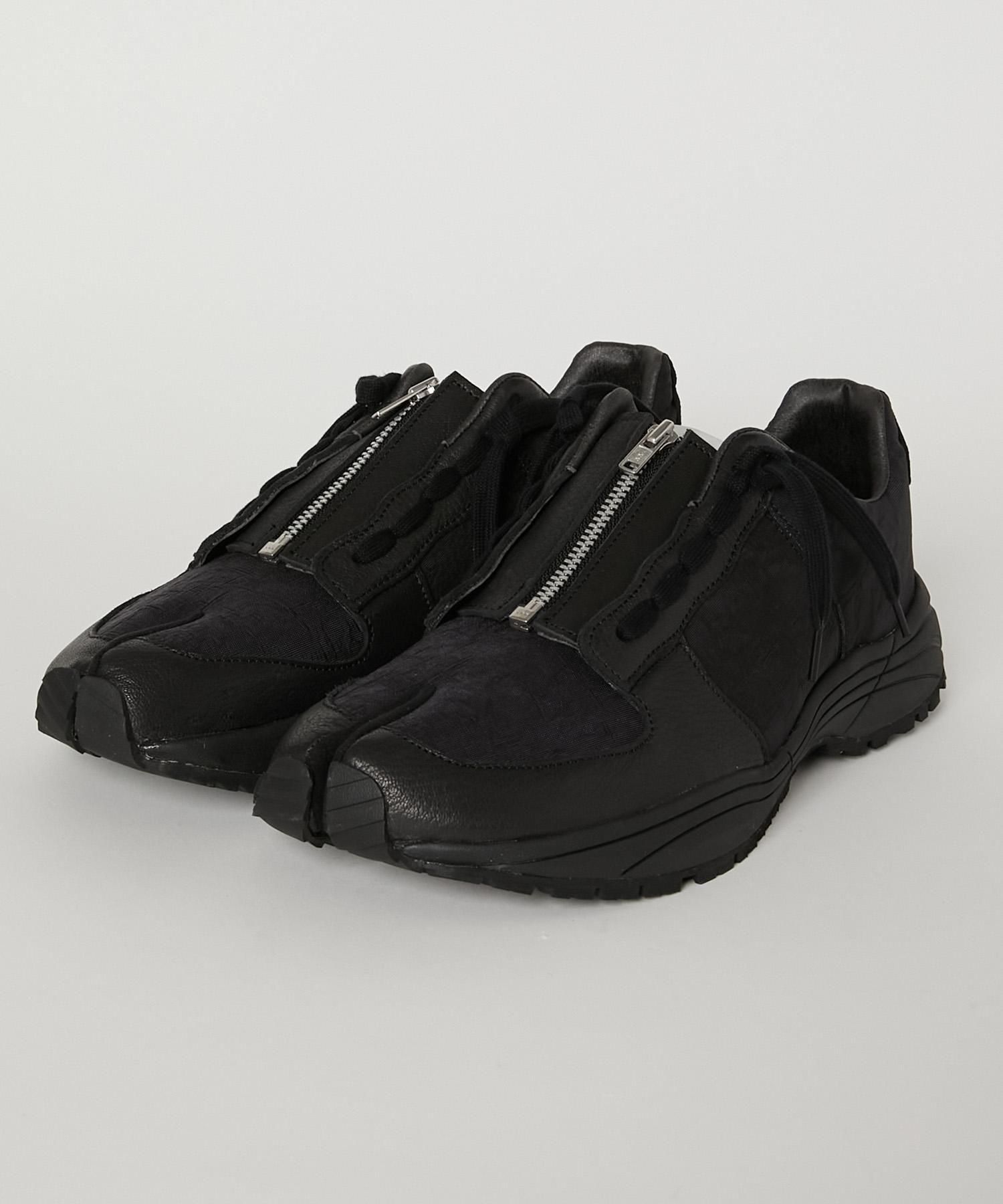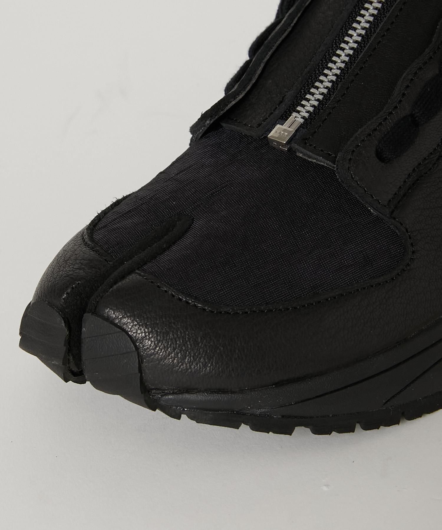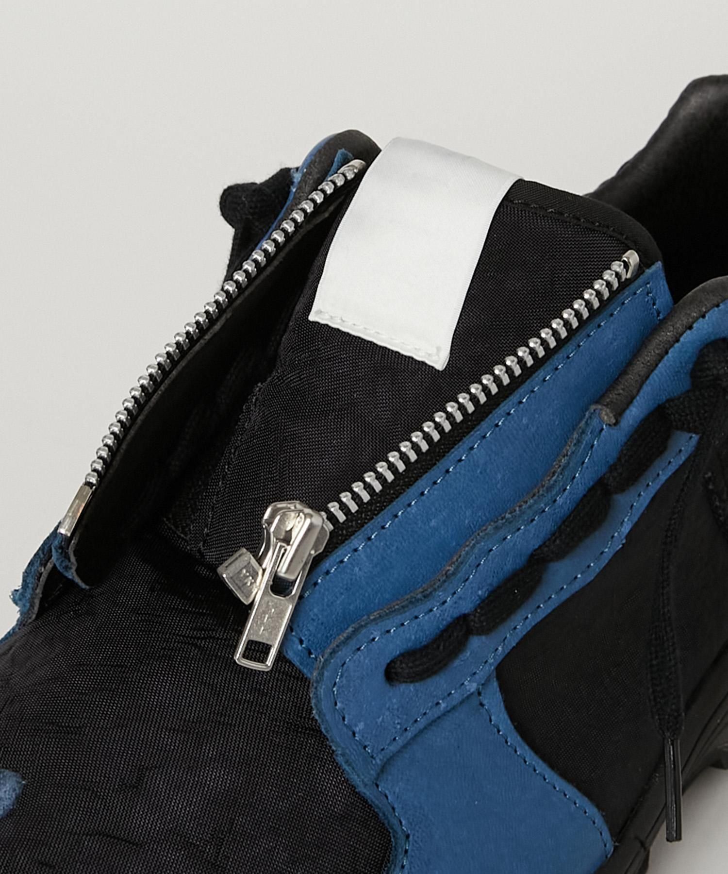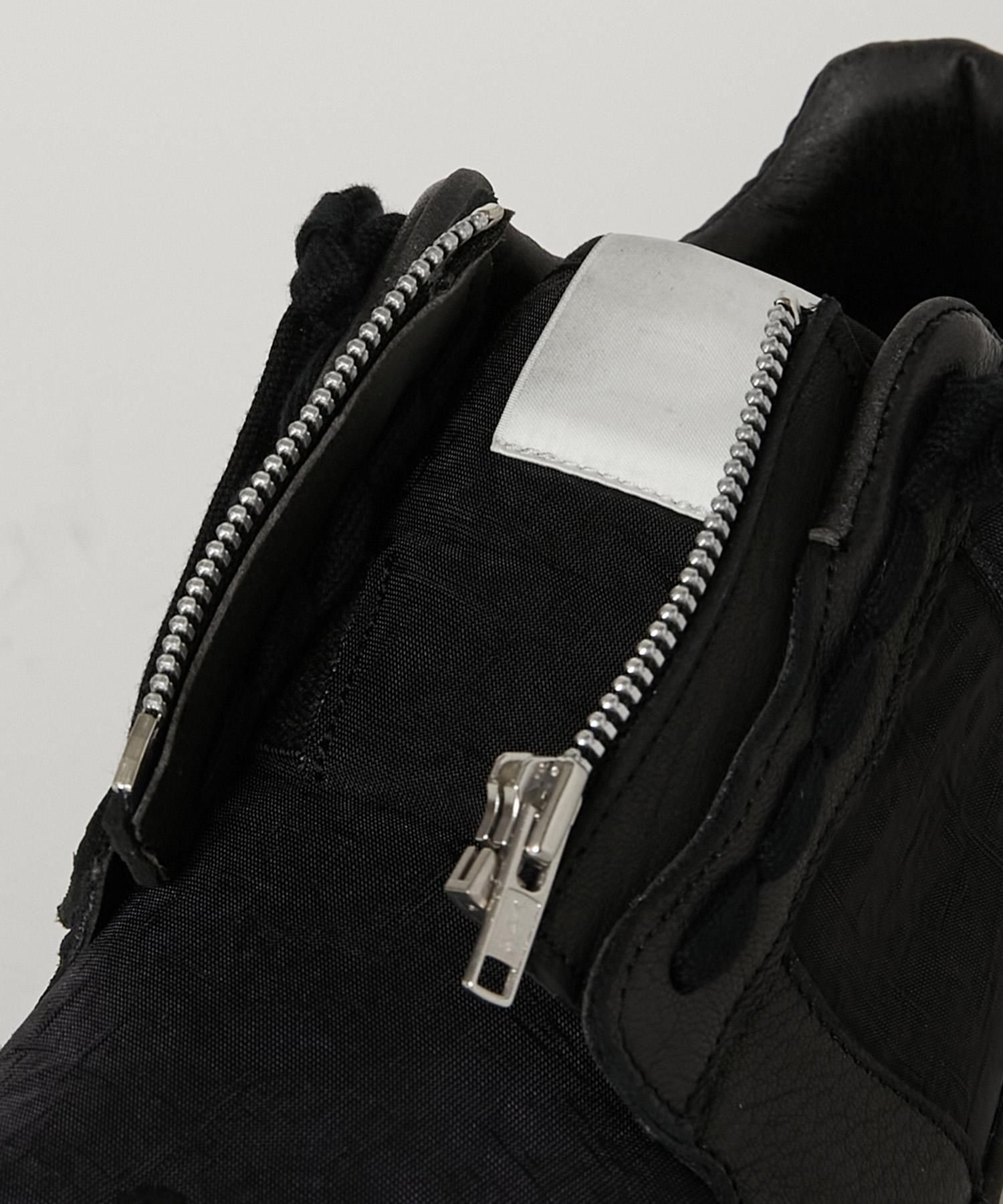 フロントジップは見た目のアクセントであると同時に、少し下げるだけでスリッポンのように楽に着脱ができる機能性を兼ね備えています。