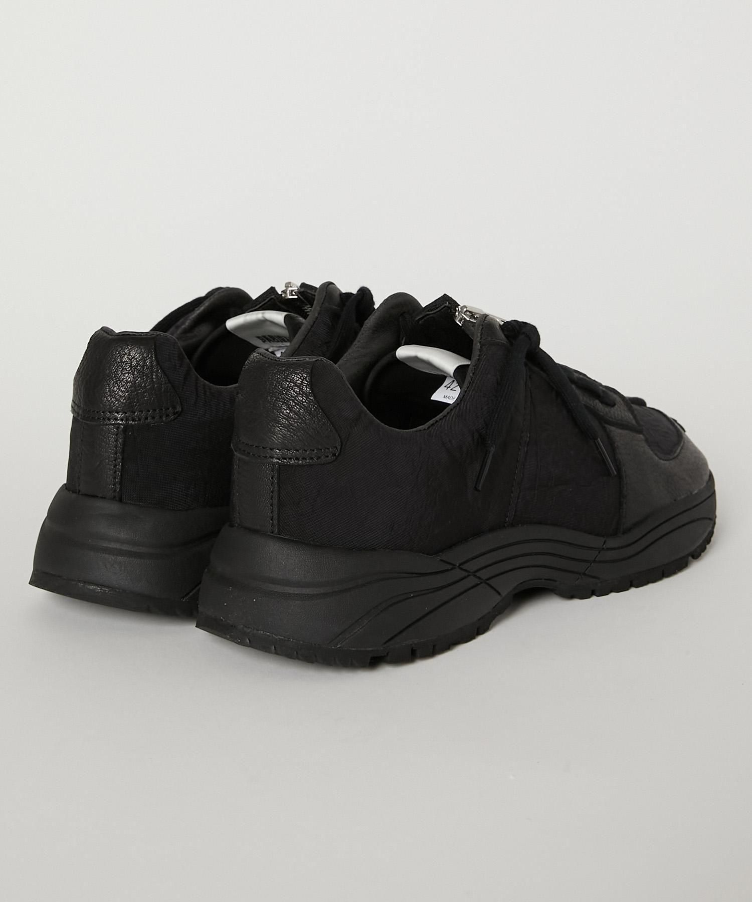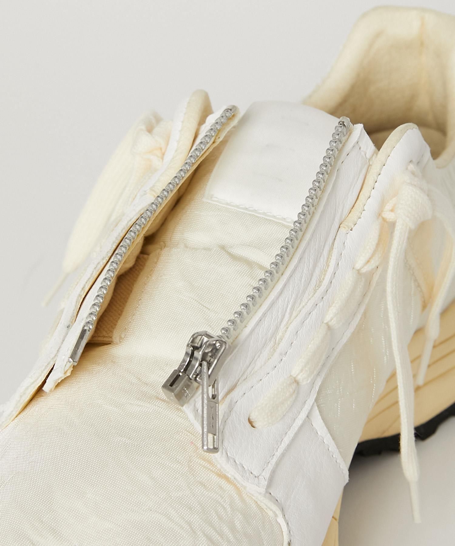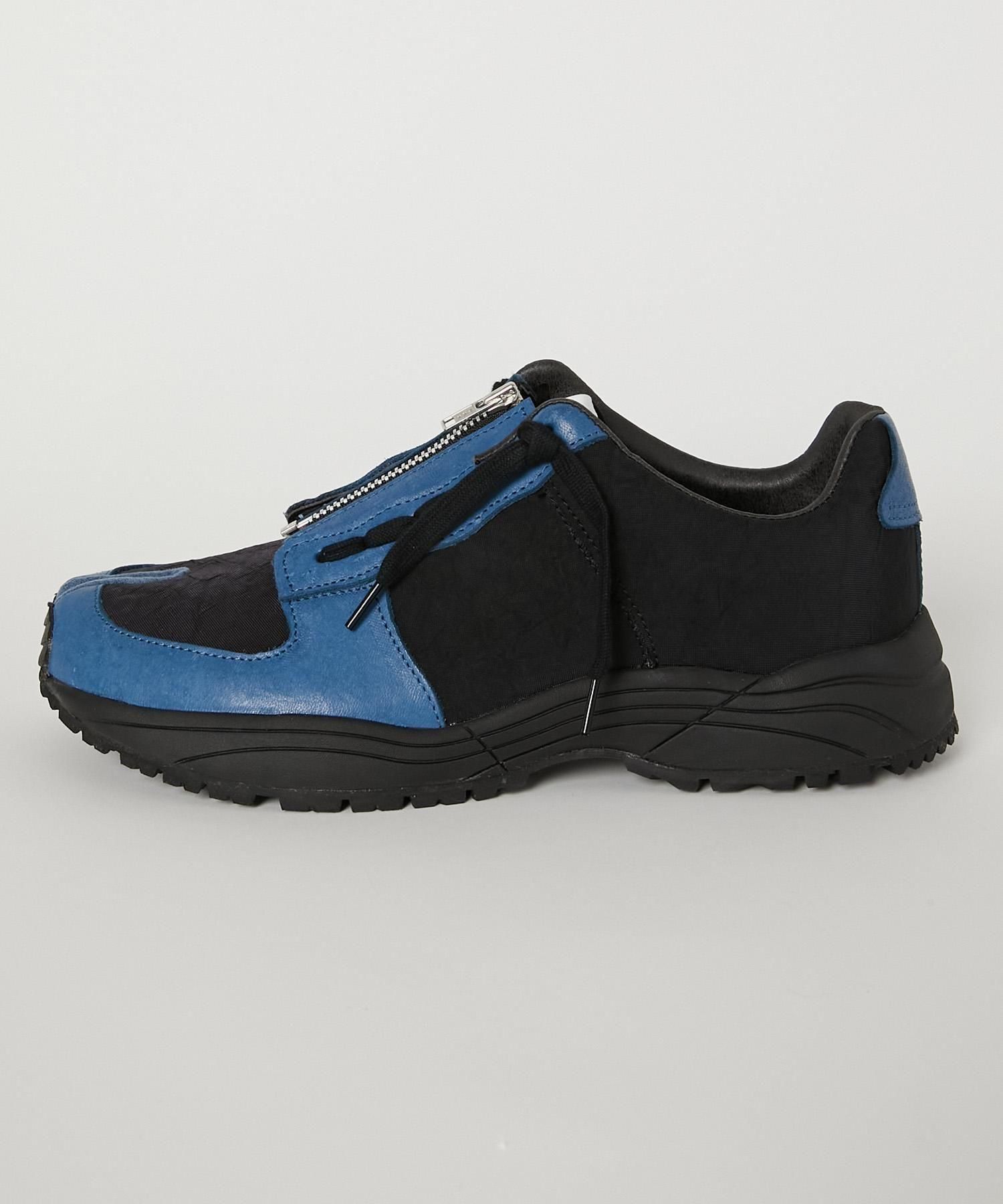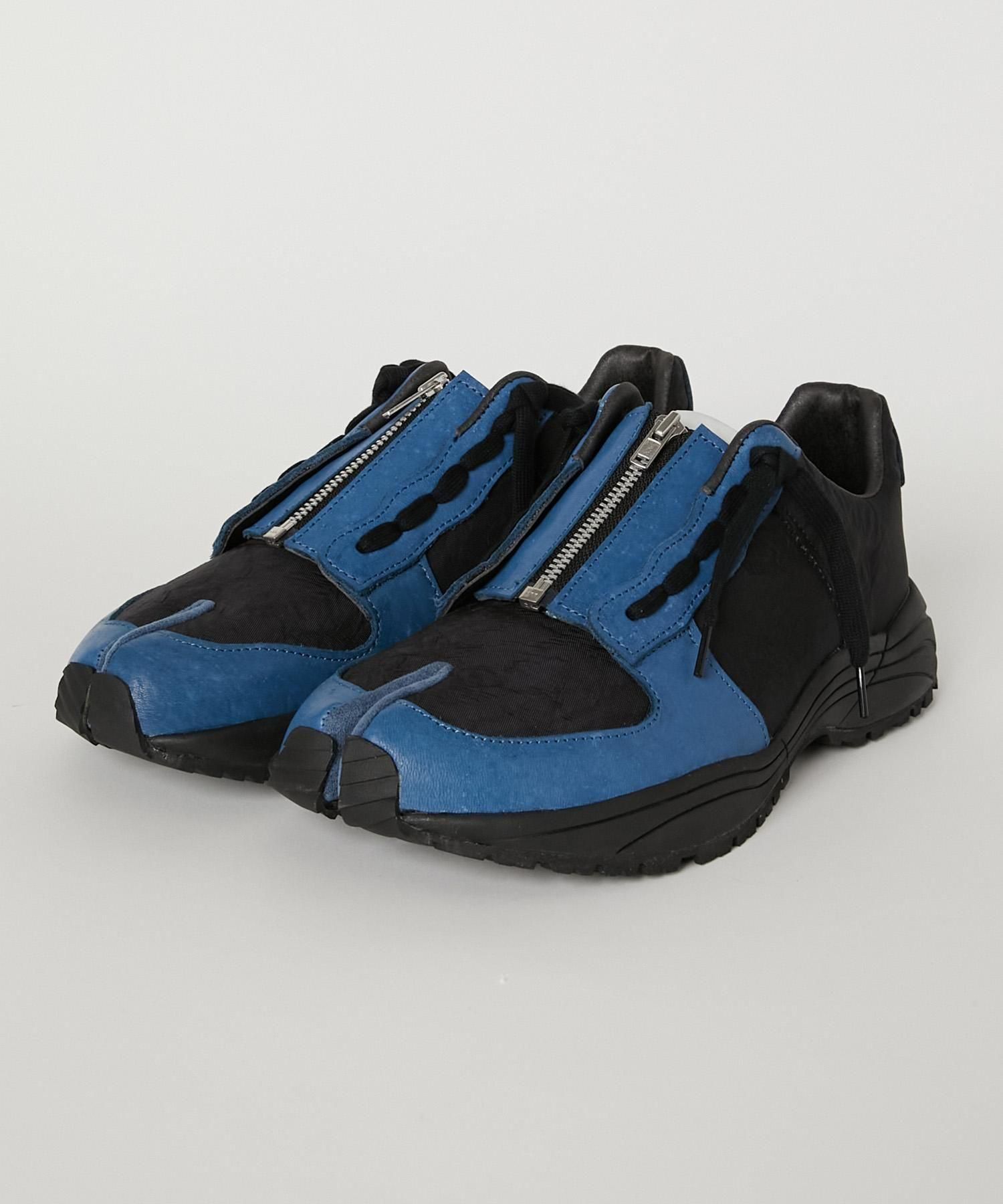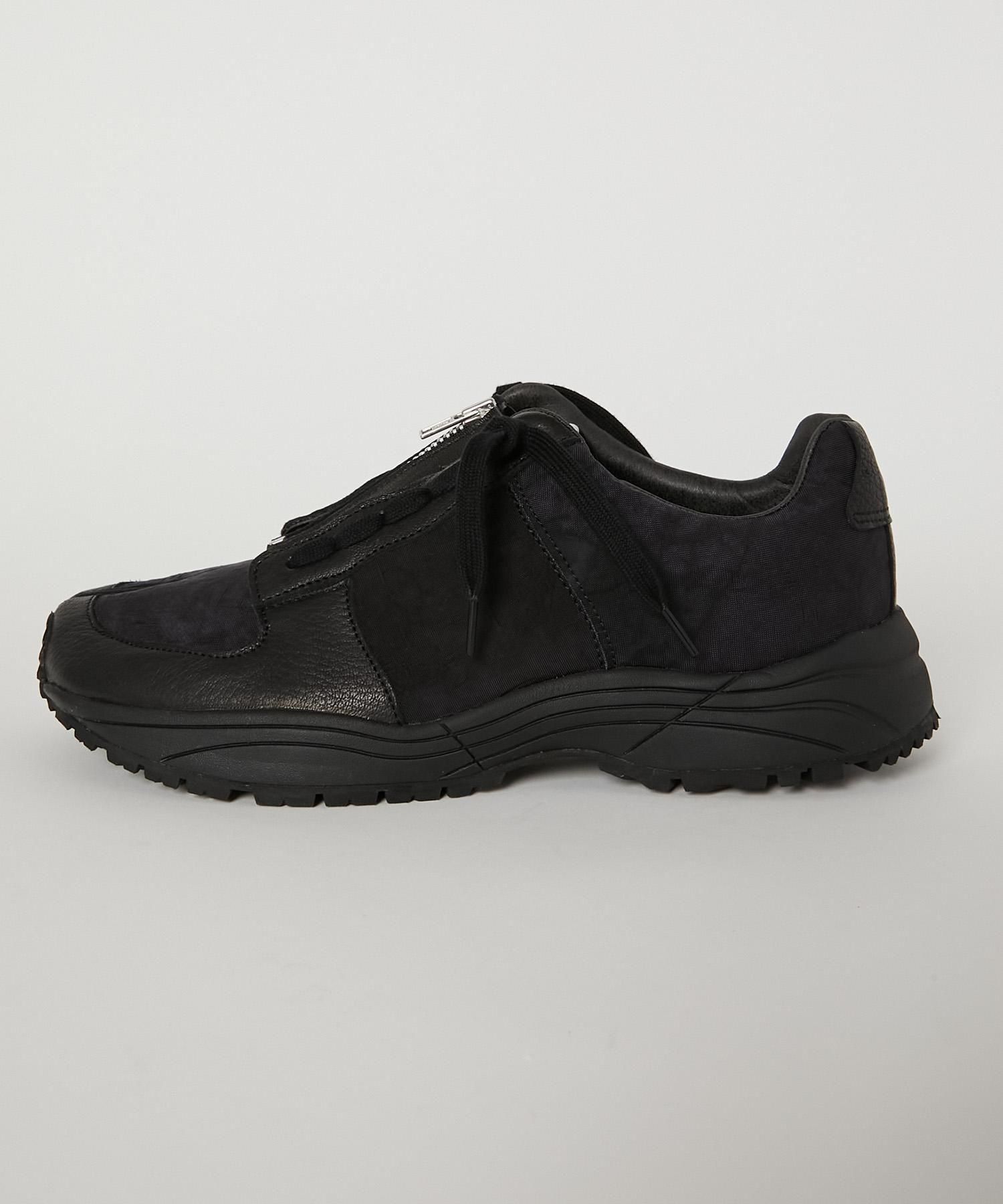 フロントジップは見た目のアクセントであると同時に、少し下げるだけでスリッポンのように楽に着脱ができる機能性を兼ね備えています。
