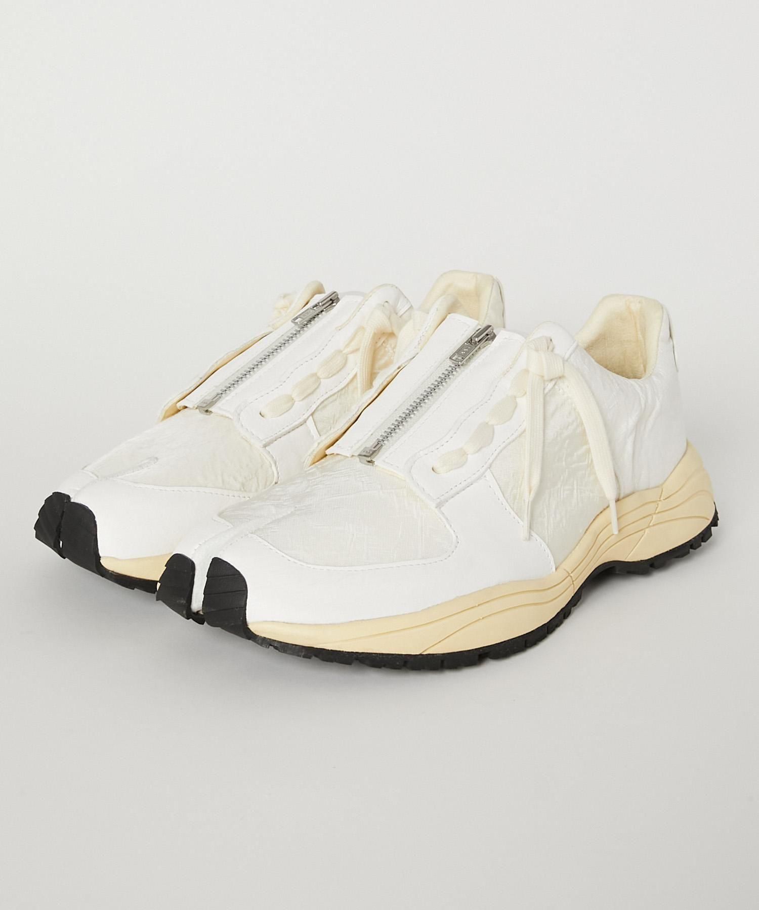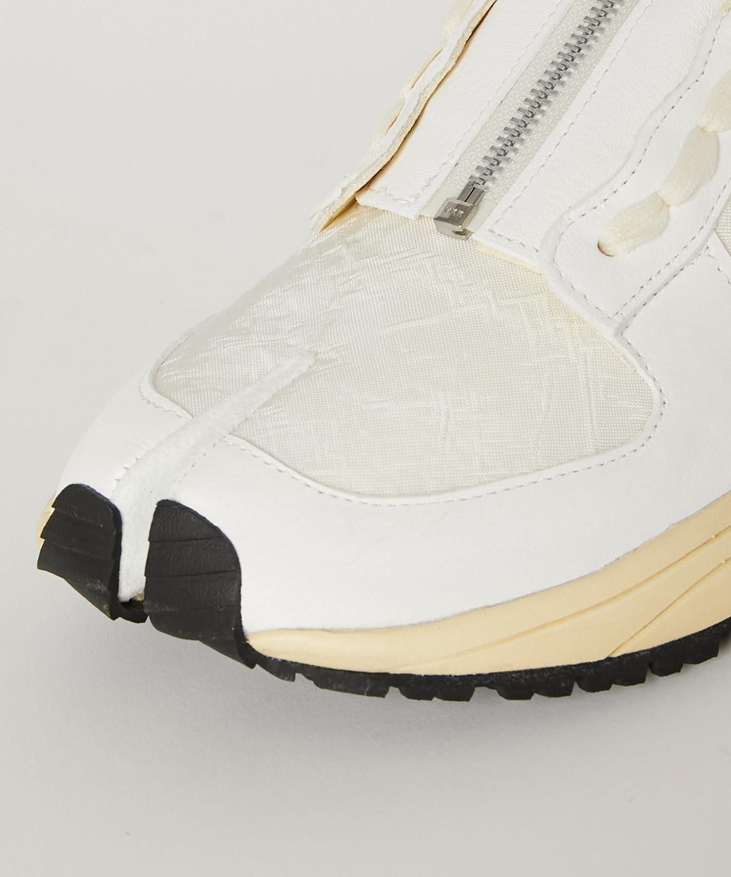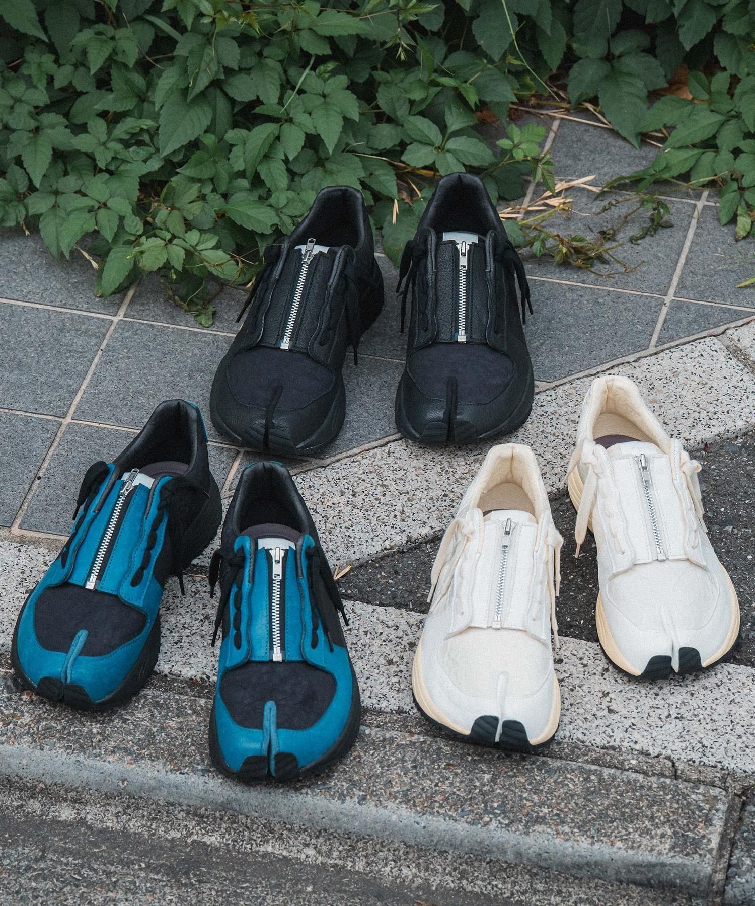 『tabito × REBIRTH PROJECT』の自動車のエアバッグをアップサイクルした足袋スニーカーシリーズから、”INOCHIKA(鹿革)”とのコンビモデルが登場。存在感と快適な履き心地を実現するボリュームあるソールに、アイコニックで着脱しやすいジップ仕様を備えた唯一無二の一足です。