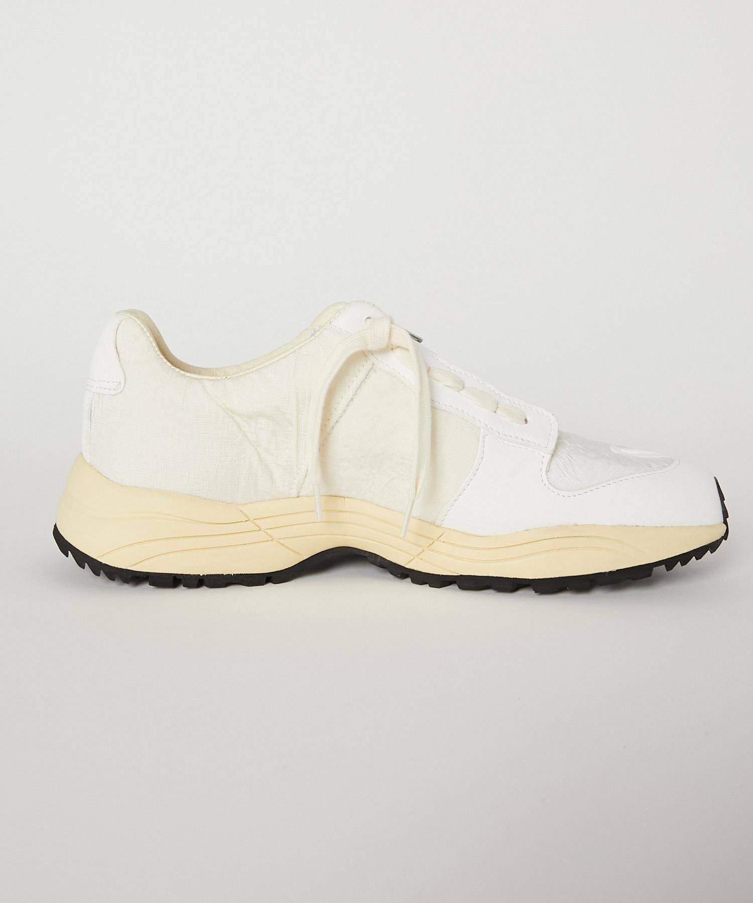 足袋の機能をスニーカーに落とし込む技術を持つ、1950年代創業の岡山県の工場で生産。アッパー縫製からソール圧着まで一貫して行い、高品質なものづくりを実現しています。