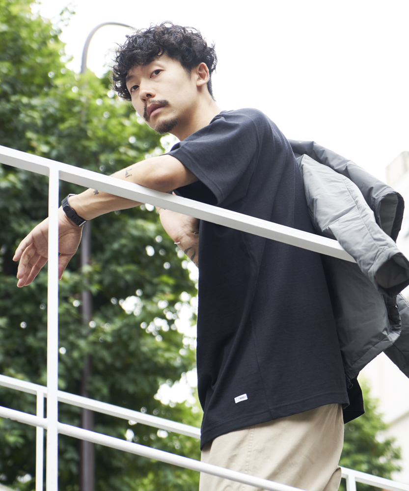 定番のシルエットのタイプと、よりリラックス感のあるオーバーサイズのTシャツもご用意しました。1枚で着用しても雰囲気のあるスタイリングに仕上がります。リバースプロジェクトのネームタグもさりげなくワンポイントに。