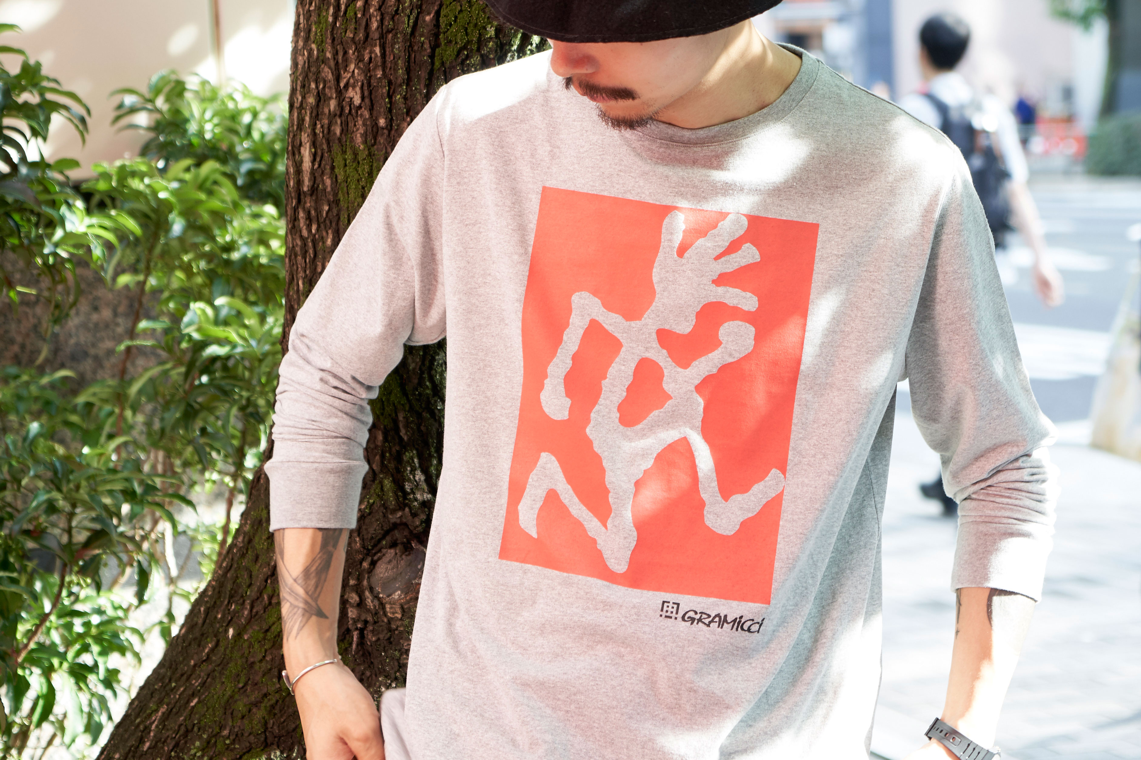 半袖Tシャツには左胸の位置に「REBIRTHPROJECT」の波系ロゴの上にGRAMICCIのアイコンである「ランニングマン」が走り、長袖Tシャツは「ランニングマン」をメインにデザインされその下にはGRAMICCIとリバースプロジェクトの「再」マークが施されています。二社コラボにしかできないデザインTシャツをぜひファッションスタイルに取り入れてみてください。ロングスリーブはホワイト、グレー、ブラックの定番のカラーと、Tシャツは気分が明るくなるレッドとブルーも加えて5色をご用意しています。