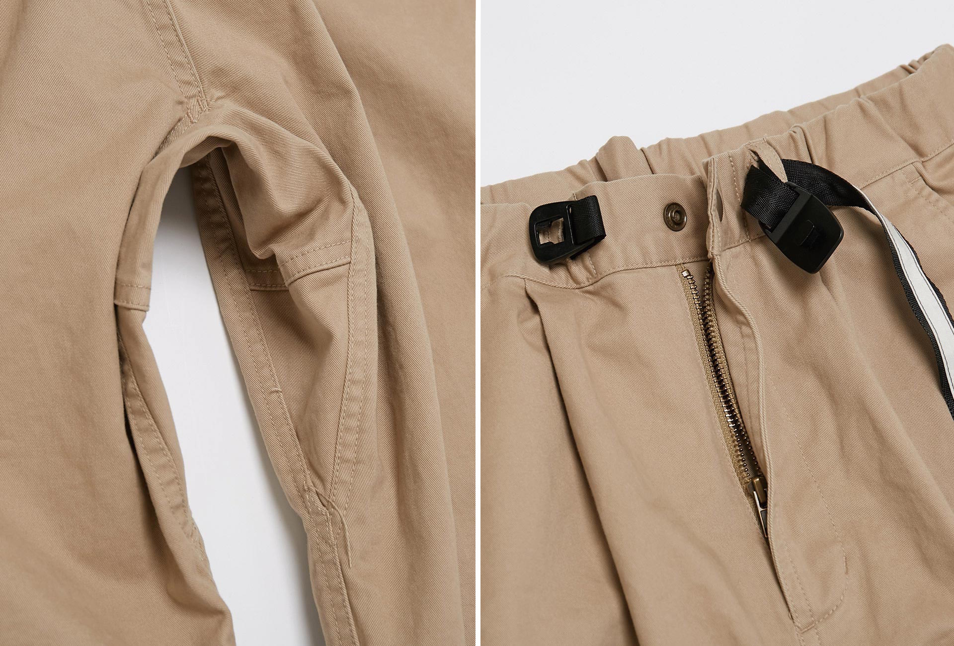 グラミチの機能性は残しつつ、そのGOTs認証を取得しているインドのオーガニックコットンのツイル素材を採用しました。ツイル素材の特徴としては肌触りがよくシワになりにくいため、デイリーにお使いいただけます。またポリウレタンが2%含まれているためストレッチが効いており快適にはいていただけますし、コットン100%のツイル素材よりもポリウレタンが含まれていることでよりシワになりにくい生地に仕上がっています。
